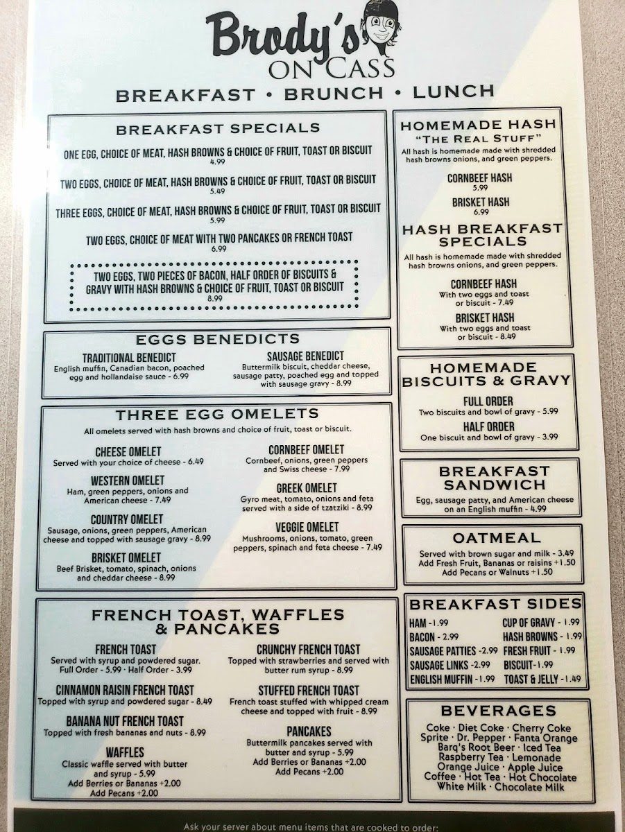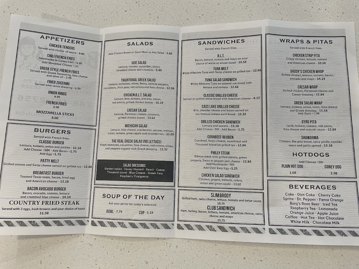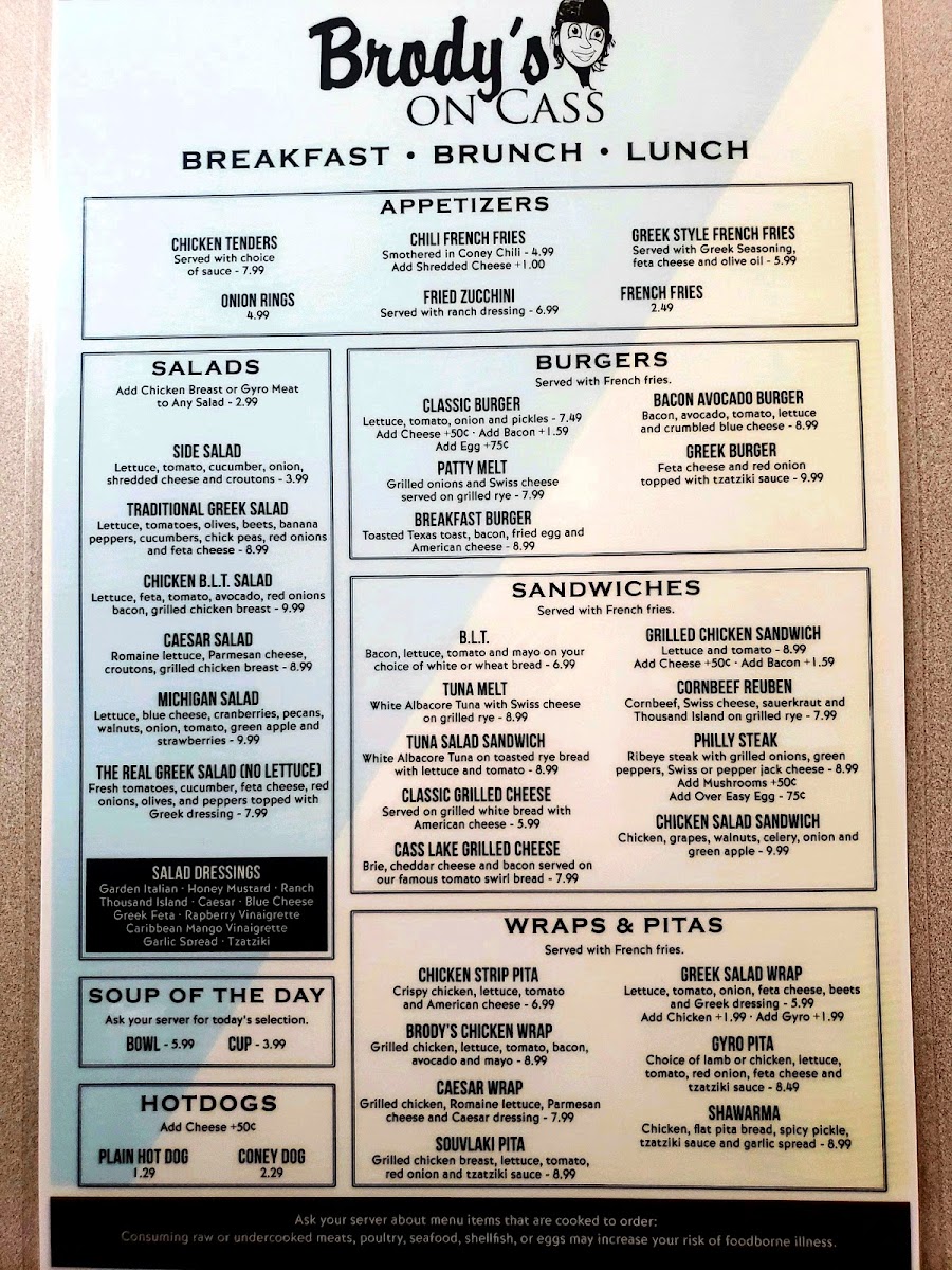 When you step into Brody's On Cass, you're in for a treat! Nestled at 1043 S Cass Lake Rd in Waterford Township, this cozy spot offers a menu that’s a mix of comfort and creativity. The Brody's On Cass Menu is packed with mouthwatering options that are sure to satisfy whatever you're craving. From juicy burgers to fresh seafood and hearty pastas, there's something for everyone. Whether you're popping in for a casual bite or enjoying a meal with friends, each dish is crafted with care, using only the best ingredients. And let’s not forget about the side options, which are just as irresistible! Whether you’re here for a quick lunch or a laid-back dinner, the food at Brody's will keep you coming back for more.
